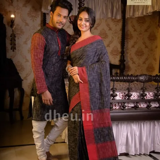 R8abric= khadi cotton ❤️ Panjabi and saree set ❤️ Handloom khadi cotton saree And khadi cotton pa